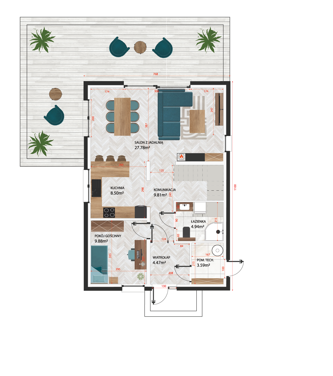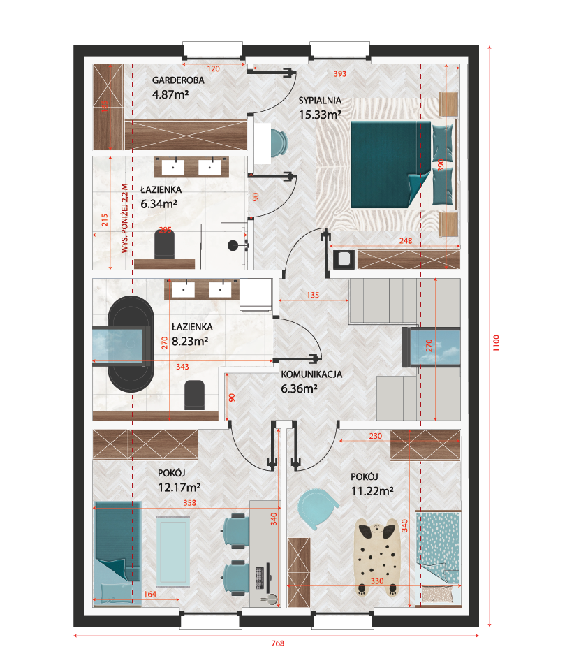 - skuteczna izolacja cieplna podłóg dzięki warstwie EPS 150 mm,